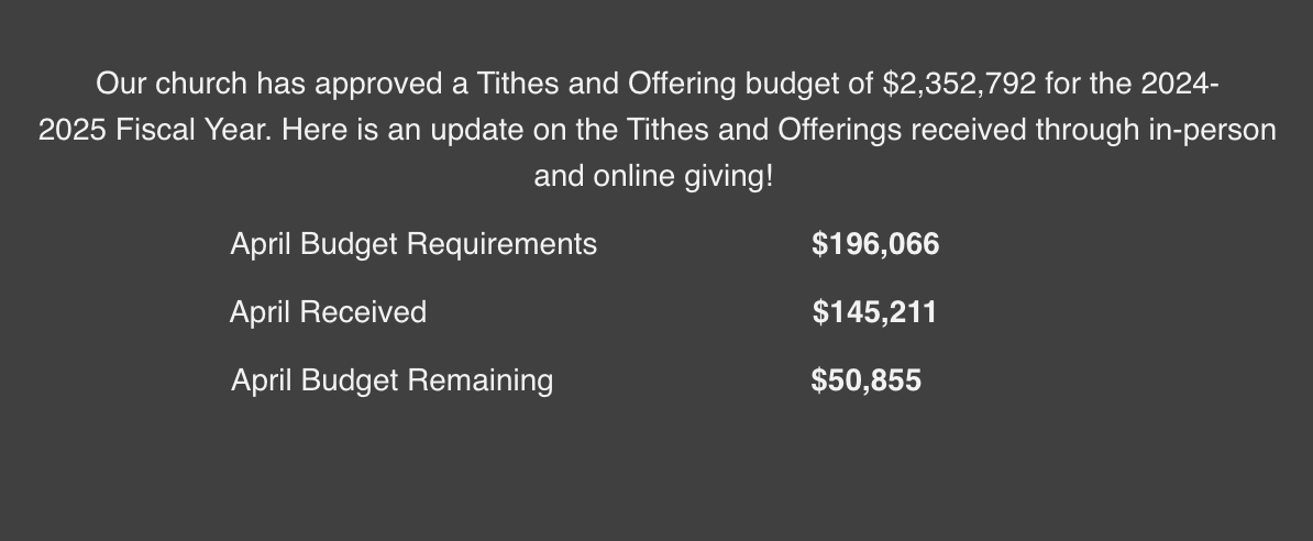 FINANCIAL UPDATE!