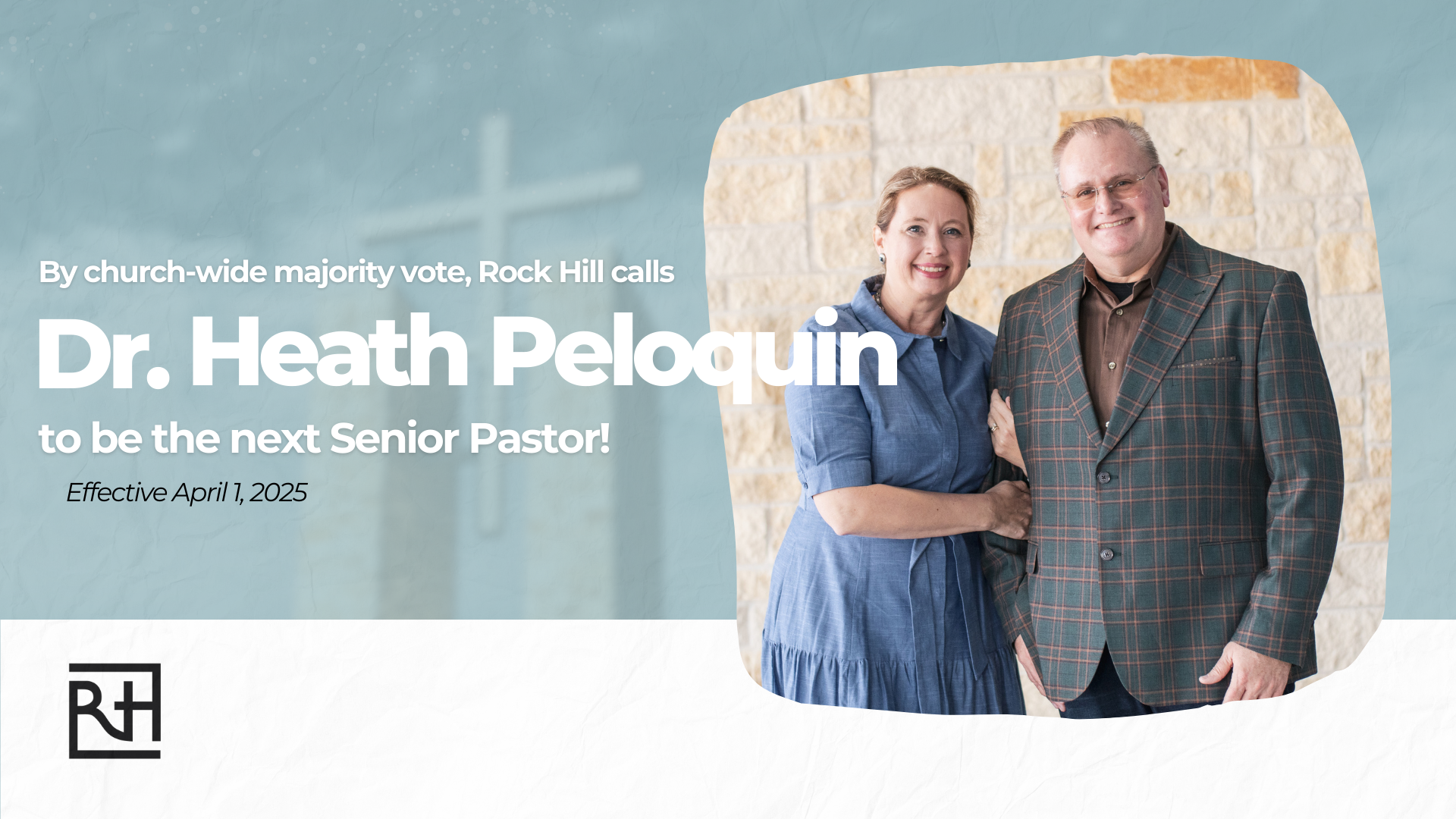 With a 99% vote of approval, this weekend Rock Hill Baptist Church affirmed the Senior Pastor Selection Committee's recommendation to call Dr. Heath Peloquin to be our next Senior Pastor! Please pray for the Peloquin family as they take care of all the transition details and for Summer Grove Baptist Church and the next Senior Pastor, who God is already preparing for leadership in that great church.