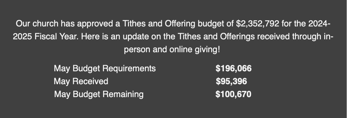 FINANCIAL UPDATE!