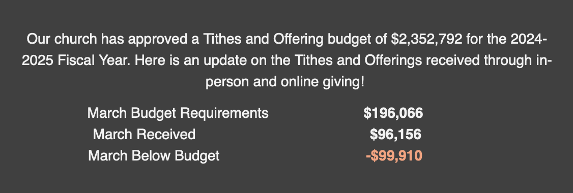 FINANCIAL UPDATE!