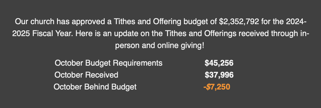 FINANCIAL UPDATE