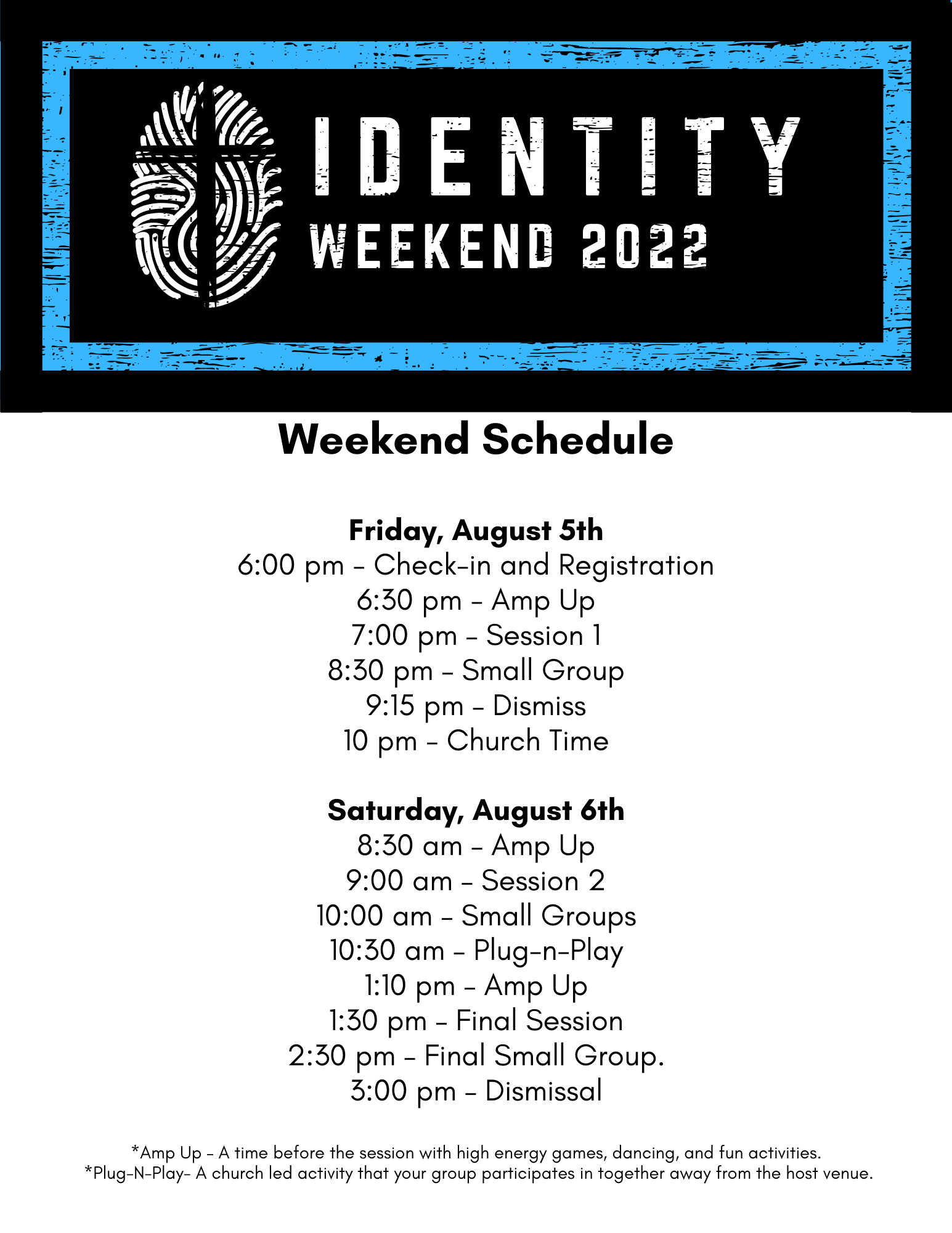 *Plug-N-Play- A church led activity that your group participates in together away from the host venue.